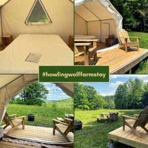 Howling Wolf offers two types of farm stays: a “glamping” yurt that rents out on Airbnb and a tentrr.com “Signature” campsite.